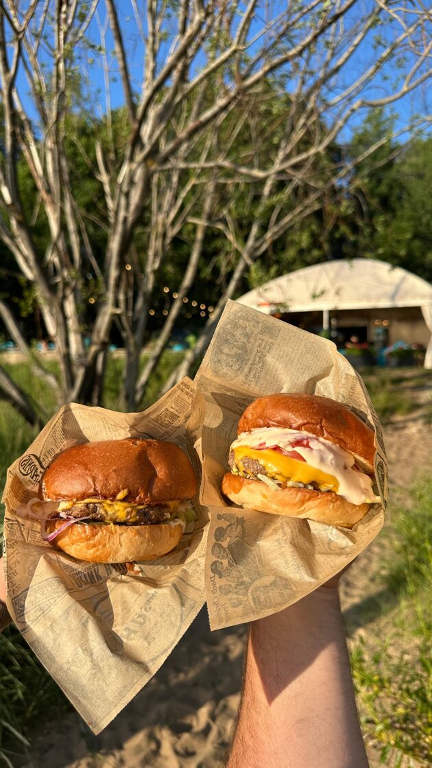 Mēs piedāvājam kvalitatīvus ēdienus – burgerus, kas cepti uz grila, svaigus salātus, jūras veltes, uzkodas un desertus. Visi ēdieni ir piemēroti baudīšanai pludmales atmosfērā, kopā ar vasarīgiem dzērieniem un labu kompāniju.